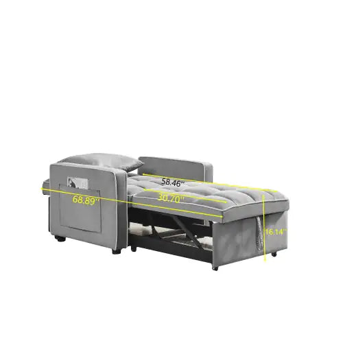 3-in-1 Convertible Sofa Bed Chair — Modern Velvet Design (Grey)